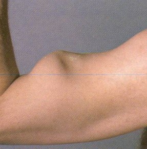 with weakness and a sensation of popping or snapping in the upper arm. A picture of