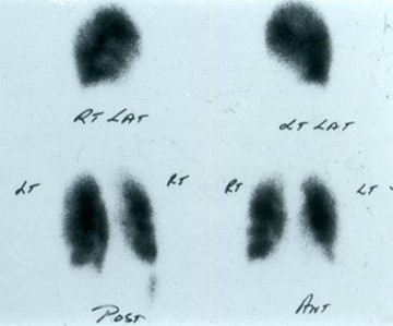 her chest x-ray was free of infiltrates, a ventilation profusion scan showed multiple
