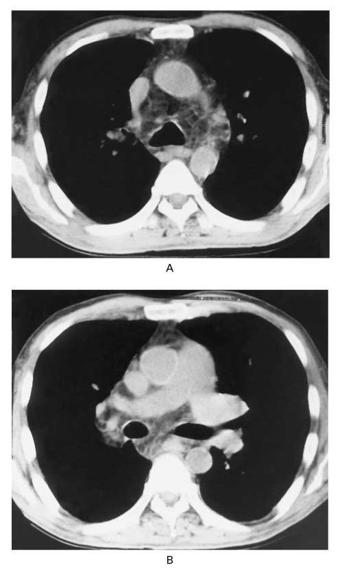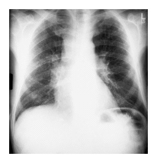 A chest x-ray (Panel A), CT scan of the chest (Panel B) and abdomen (Panel C),