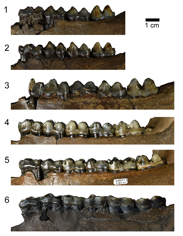 To answer this question, researchers turned to tapirs. These are large herbivorous mammals whose living species are found in the tropics of the Americas and Asia. There are several dozen well-preserved fossil tapirs at the Gray Fossil Site, more than at any other fossil site in the world. And inside their skulls are numerous little time capsules that preserve unique evidence of these animals’ lifestyles: their teeth.