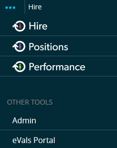 The application names have changed from Applicant Tracking and Position Management to Hire and Positions. To change applications, click on the blue dots in the upper left corner.