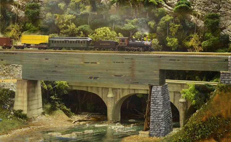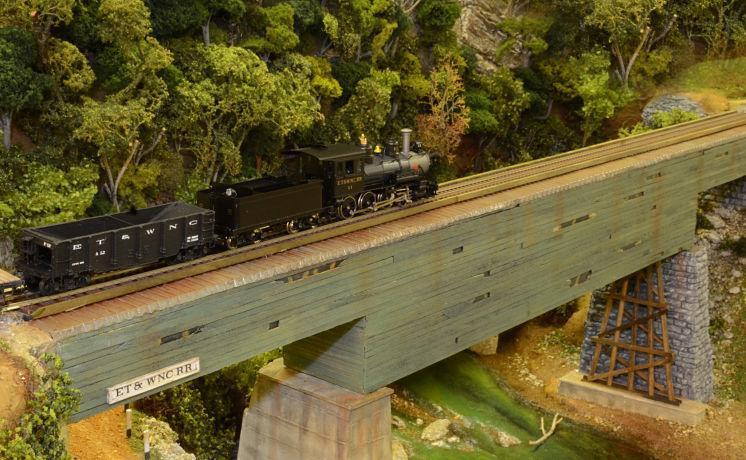 This layout takes up the majority of the Ken Marsh Hall, a room that measures 1300 square feet. Under construction now, our HOn3 layout will be the largest representation of this railroad in the world once completed. Featured prominently in both local and national media, the Carter Museum’s ‘Tweetsie’ display is accurate to scale in most of its historical structures and also gives a practical demonstration of the rigors of mountain railroading, as it features a true ruling grade to climb from the Johnson City yards to the ore mine.